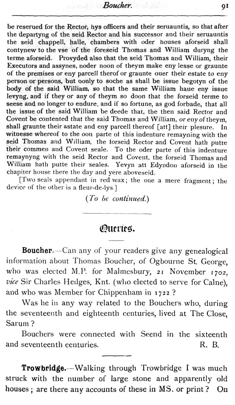 Page 45 Edington,Queries: Boucher, Trowbridge