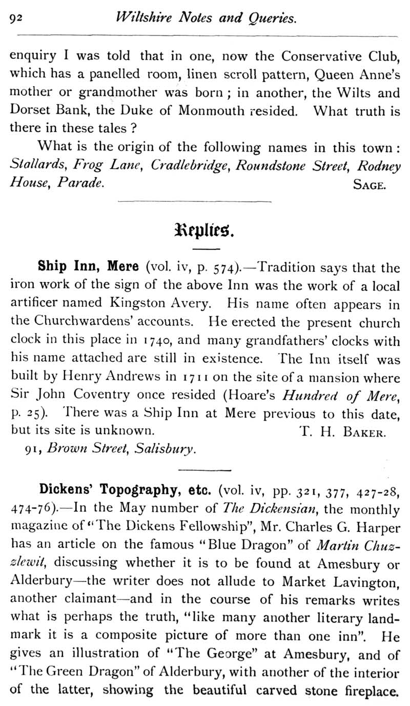 Page 46 Replies: Ship Inn, Mere; Dickens' Topography