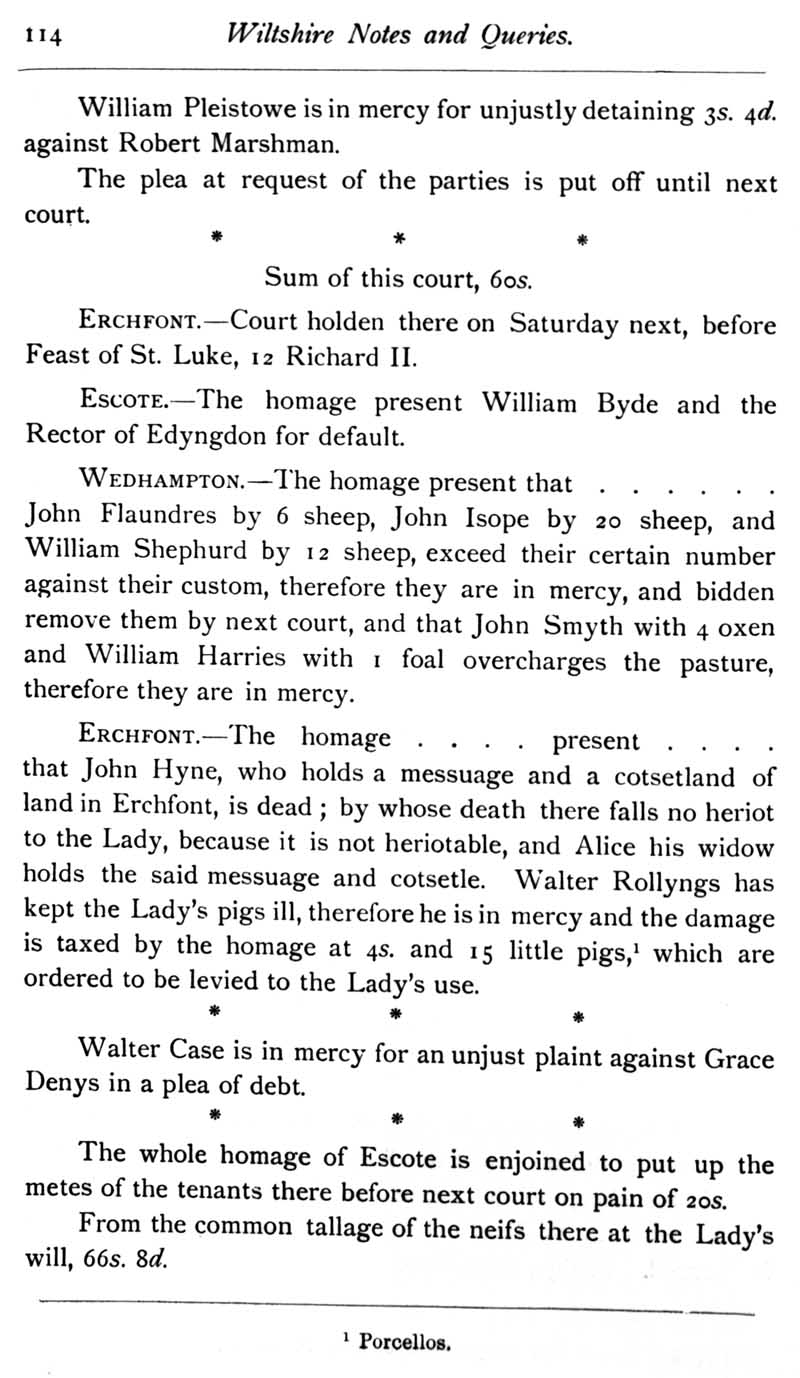 Chapter 4 Eyre of Wiltshire; Records of Wiltshire Parishes: Urchfont with Stert; Quakerism in Wiltshire; Wiltshire Wills; Edington; Fisherton Gaol and its Occupants in 1649; Queries; Replies.