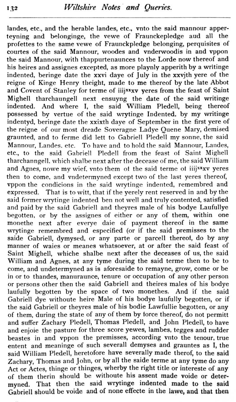 Chapter 4 Eyre of Wiltshire; Records of Wiltshire Parishes: Urchfont with Stert; Quakerism in Wiltshire; Wiltshire Wills; Edington; Fisherton Gaol and its Occupants in 1649; Queries; Replies.