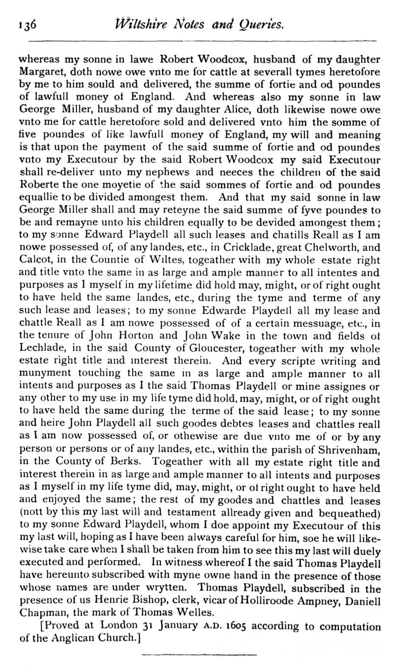 Chapter 4 Eyre of Wiltshire; Records of Wiltshire Parishes: Urchfont with Stert; Quakerism in Wiltshire; Wiltshire Wills; Edington; Fisherton Gaol and its Occupants in 1649; Queries; Replies.