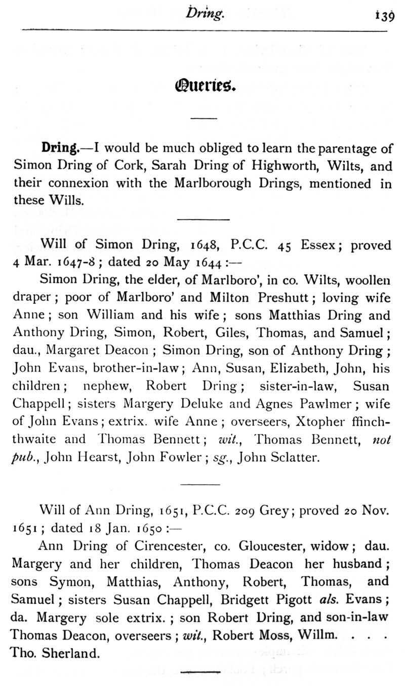 Chapter 4 Eyre of Wiltshire; Records of Wiltshire Parishes: Urchfont with Stert; Quakerism in Wiltshire; Wiltshire Wills; Edington; Fisherton Gaol and its Occupants in 1649; Queries; Replies.