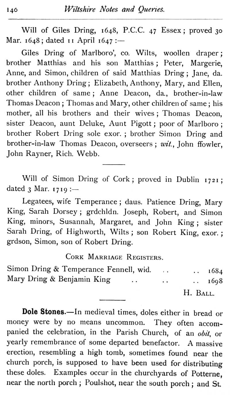 Chapter 4 Eyre of Wiltshire; Records of Wiltshire Parishes: Urchfont with Stert; Quakerism in Wiltshire; Wiltshire Wills; Edington; Fisherton Gaol and its Occupants in 1649; Queries; Replies.
