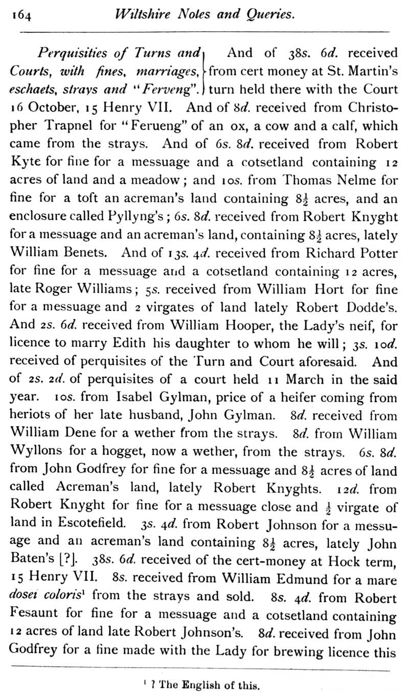 Chapter 5 Snigg; Eyre of Wiltshire; Records of Wiltshire Parishes: Urchfont with Stert; Chippenham Parish Church; Quakerism in Wiltshire; Feet of Fines for Wiltshire; Wiltshire Wills; A lsit of Wiltshire Portraits; Queries; Replies.