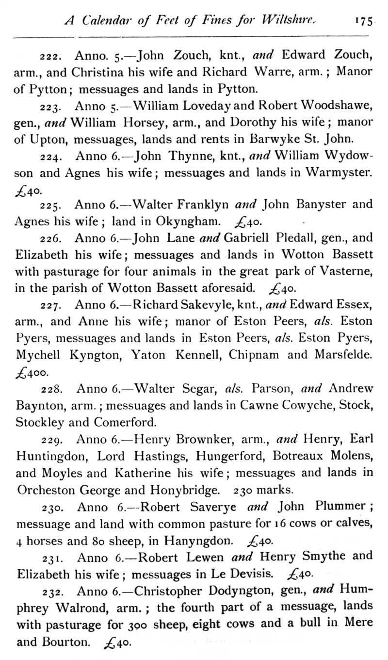 Page 32 Calendar of Feet of Fines for Wiltshire