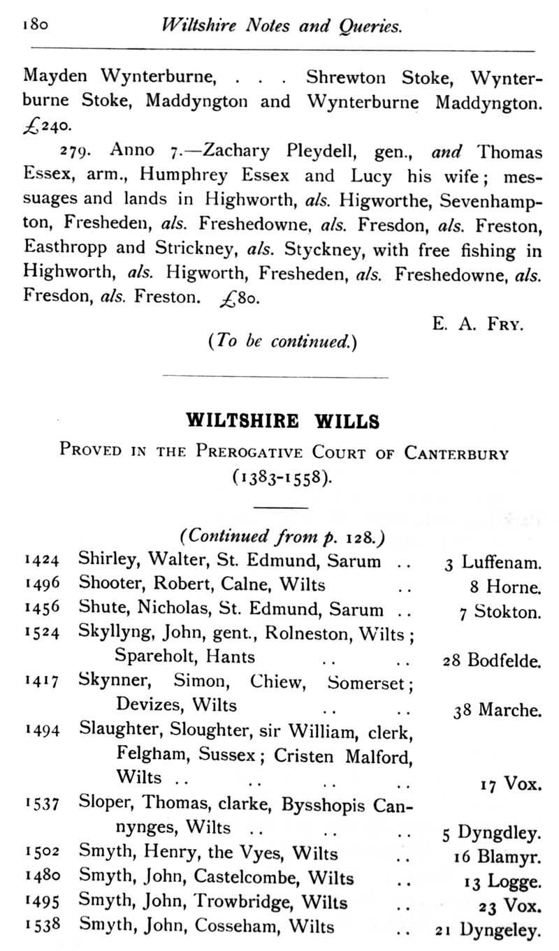 Page 37 Calendar of Feet of Fines for Wiltshire,Wiltshire Wills