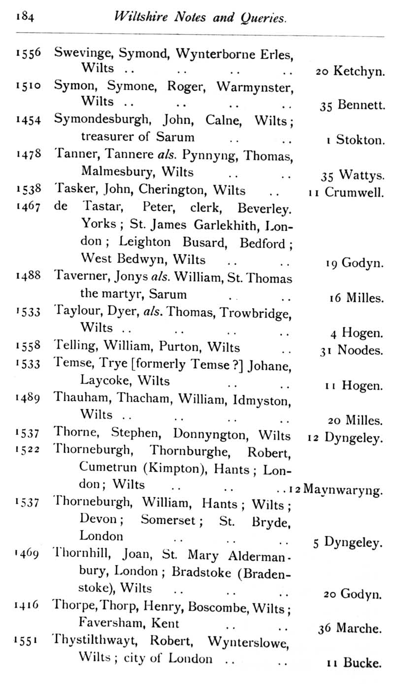 Chapter 5 Snigg; Eyre of Wiltshire; Records of Wiltshire Parishes: Urchfont with Stert; Chippenham Parish Church; Quakerism in Wiltshire; Feet of Fines for Wiltshire; Wiltshire Wills; A lsit of Wiltshire Portraits; Queries; Replies.