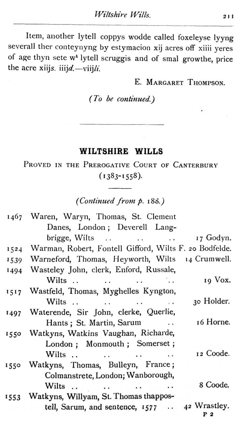 Page 19 Records of Wiltshire Parishes: Urchfont with Stert;Wiltshire Wills