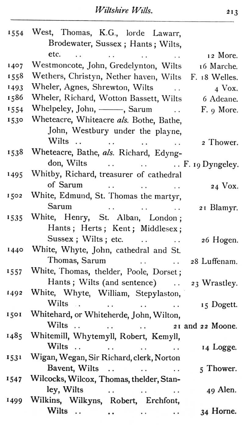 Chapter 6 Stokes of Seend; Records of Wiltshire Parishes: Urchfont with Stert; Wiltshire Wills; Eyre of Wiltshire; Quakerism in Wiltshire; The Great Election Contest for Wiltshire in 1772; Corriatt and Saint Barbe; Cartularies of Wilts Abbeys etc.; Queries; Replies