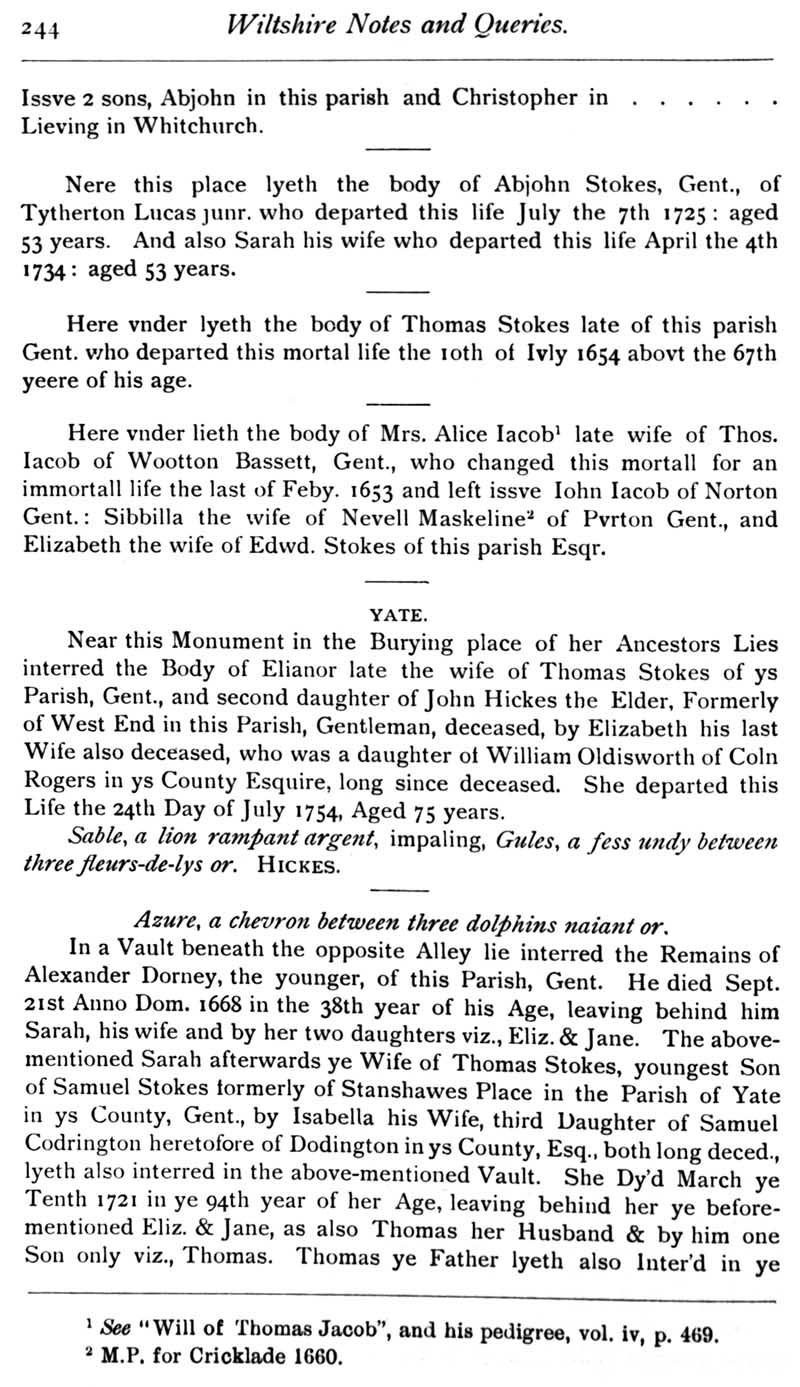Chapter 7 Stokes; Records of Wiltshire Parishes: Urchfont with Stert; Tothill; Wiltshire Wills; Eyre of Wilts; Quakerism in Wiltshire; Corrody; Sarum Use; Queries; Replies; Notes on Books.