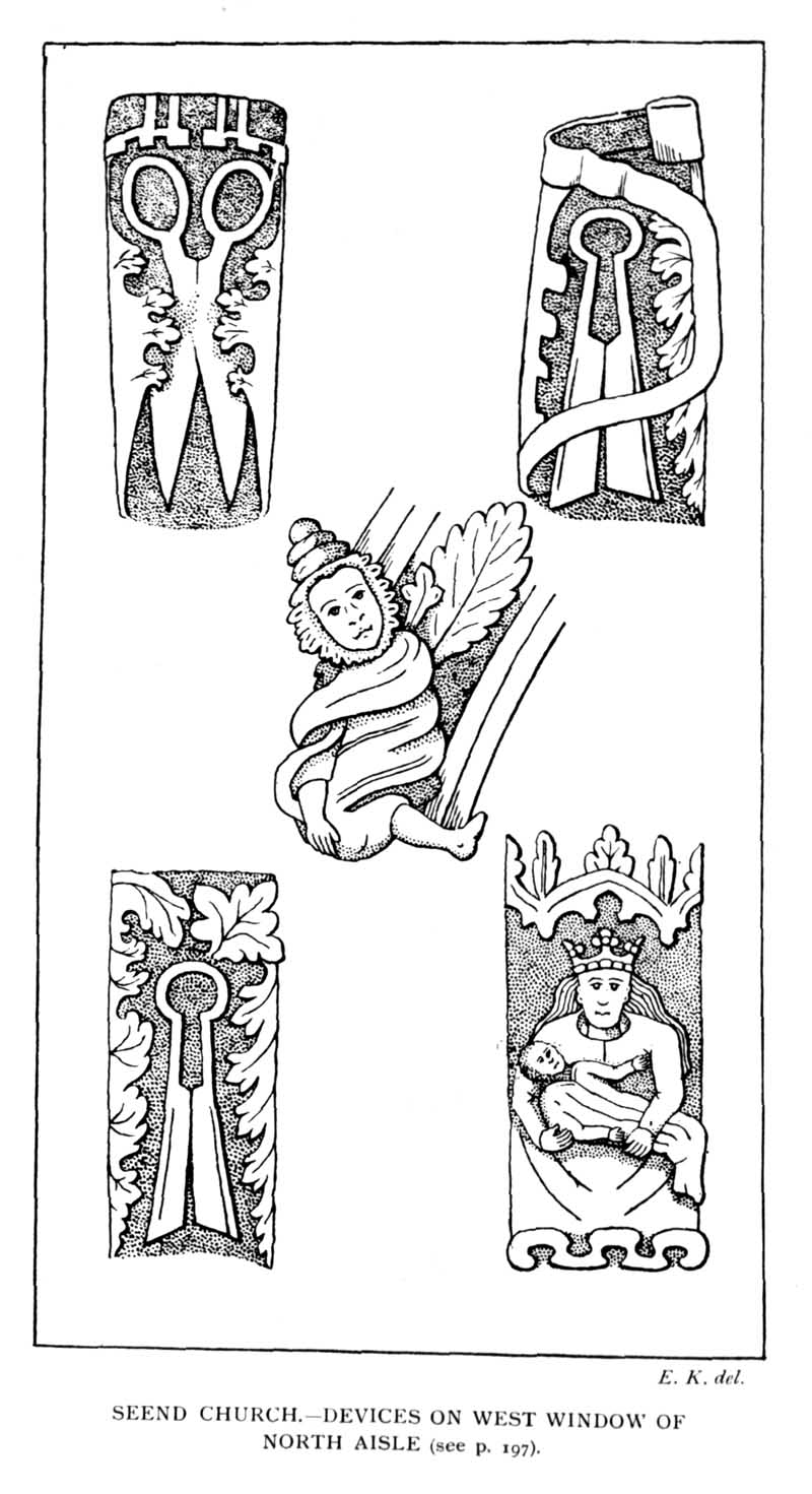 Page 1 Seend Church- Devices on West Window of North Aisle- illustration
