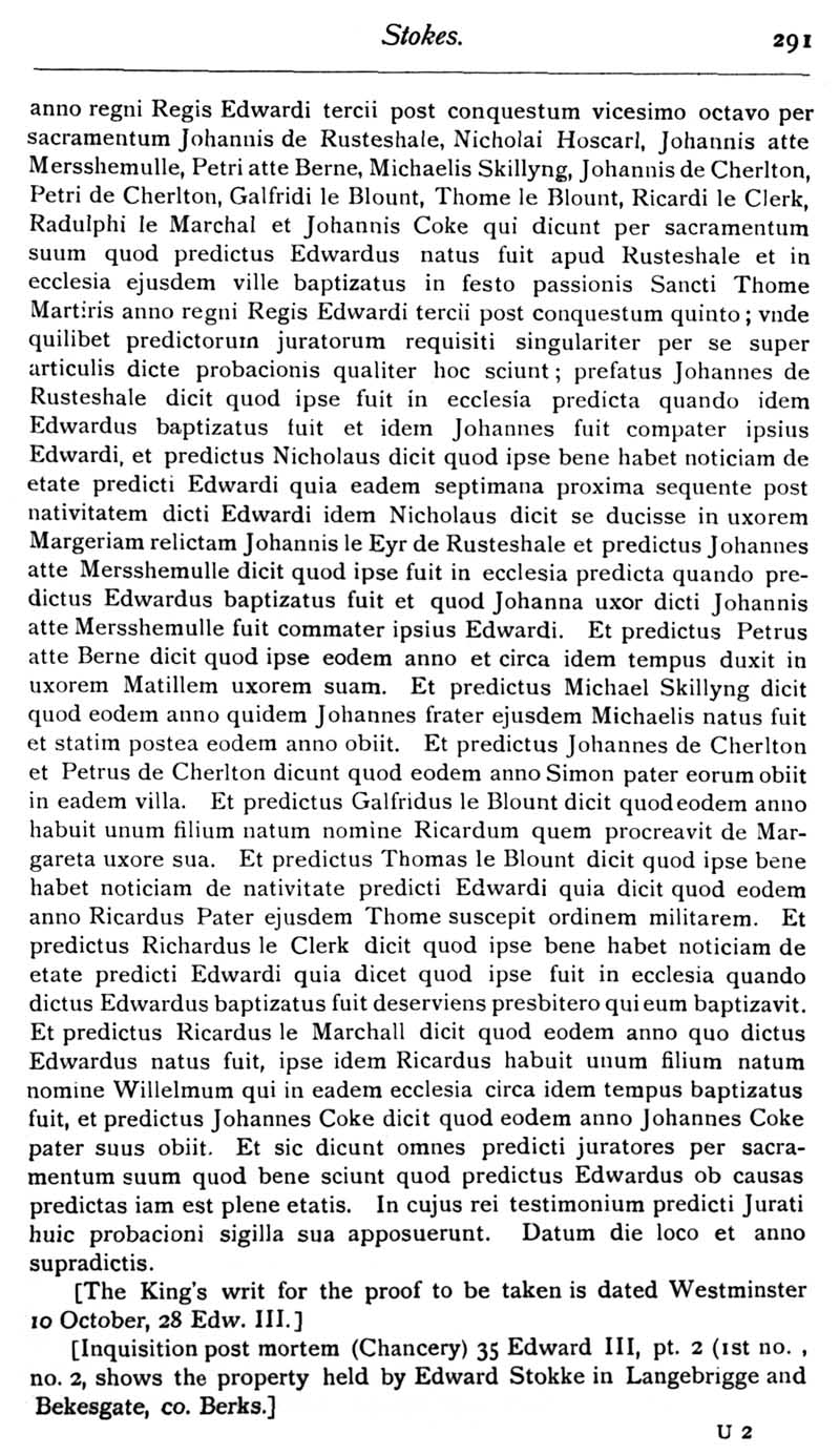 Chapter 8 Stokes; Records of Wiltshire Parishes: Urchfont with Stert; A List of Wiltshire Portraits; Quakerism in Wiltshire; Some Wiltshire Springs and Holy Wells; Eyre of Wilts; Wiltshire Wills; Feet of Fines for Wiltshire; Monumental Brass to the Grandfather of J