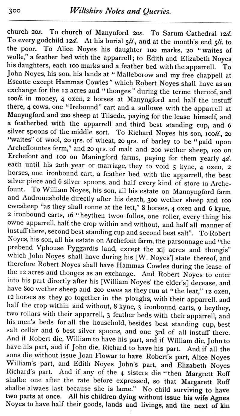 Chapter 8 Stokes; Records of Wiltshire Parishes: Urchfont with Stert; A List of Wiltshire Portraits; Quakerism in Wiltshire; Some Wiltshire Springs and Holy Wells; Eyre of Wilts; Wiltshire Wills; Feet of Fines for Wiltshire; Monumental Brass to the Grandfather of J