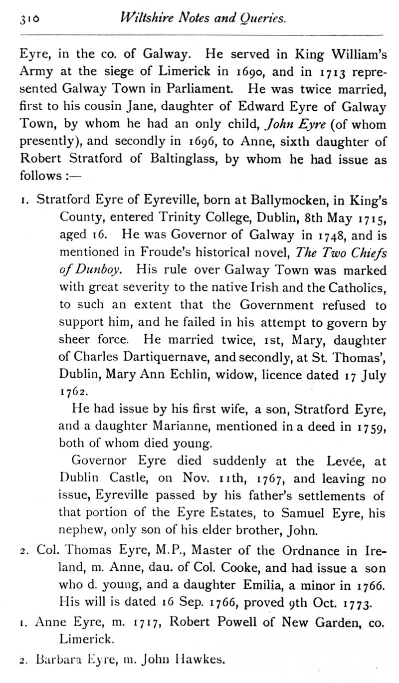 Chapter 8 Stokes; Records of Wiltshire Parishes: Urchfont with Stert; A List of Wiltshire Portraits; Quakerism in Wiltshire; Some Wiltshire Springs and Holy Wells; Eyre of Wilts; Wiltshire Wills; Feet of Fines for Wiltshire; Monumental Brass to the Grandfather of J