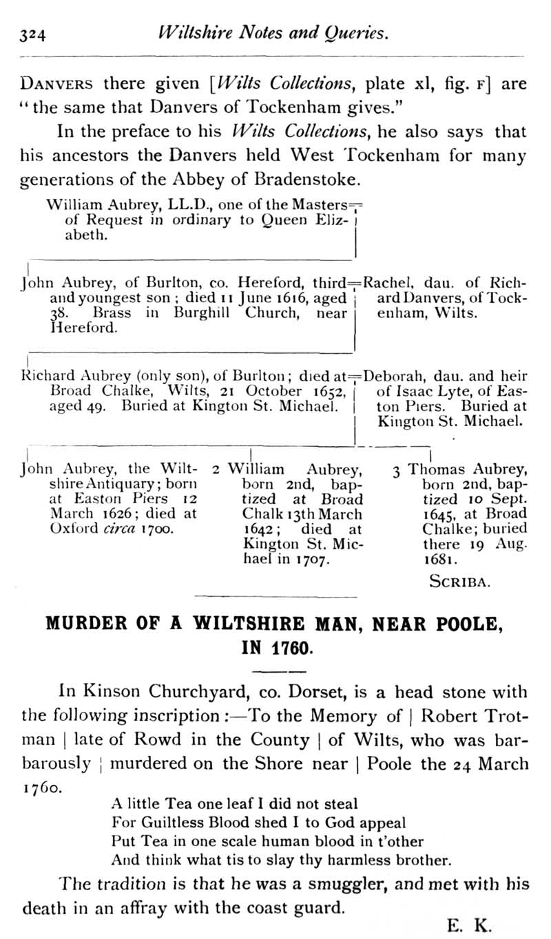 Page 38 Monumental Brass to the Grandfather of John Aubrey, the Wiltshire Antiquary;,Murder of a Wiltshire Man, Near Poole in 1760.