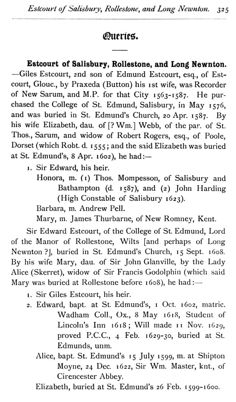 Page 39 Queries: Estcourt of Salisbury, Rollstone and Long Newton