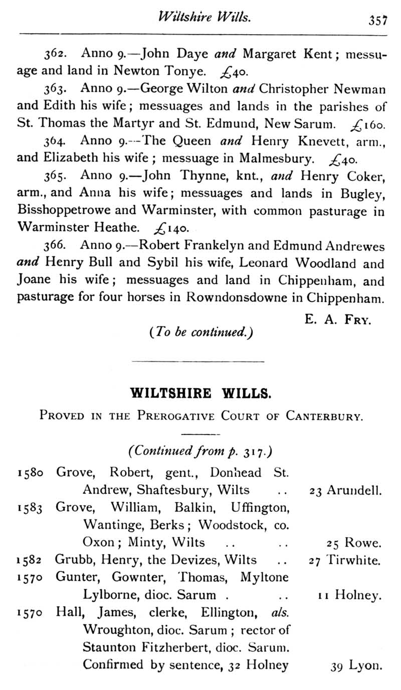 Page 22 Calendar of Feet of Fines for Wiltshire;Wiltshire Wills