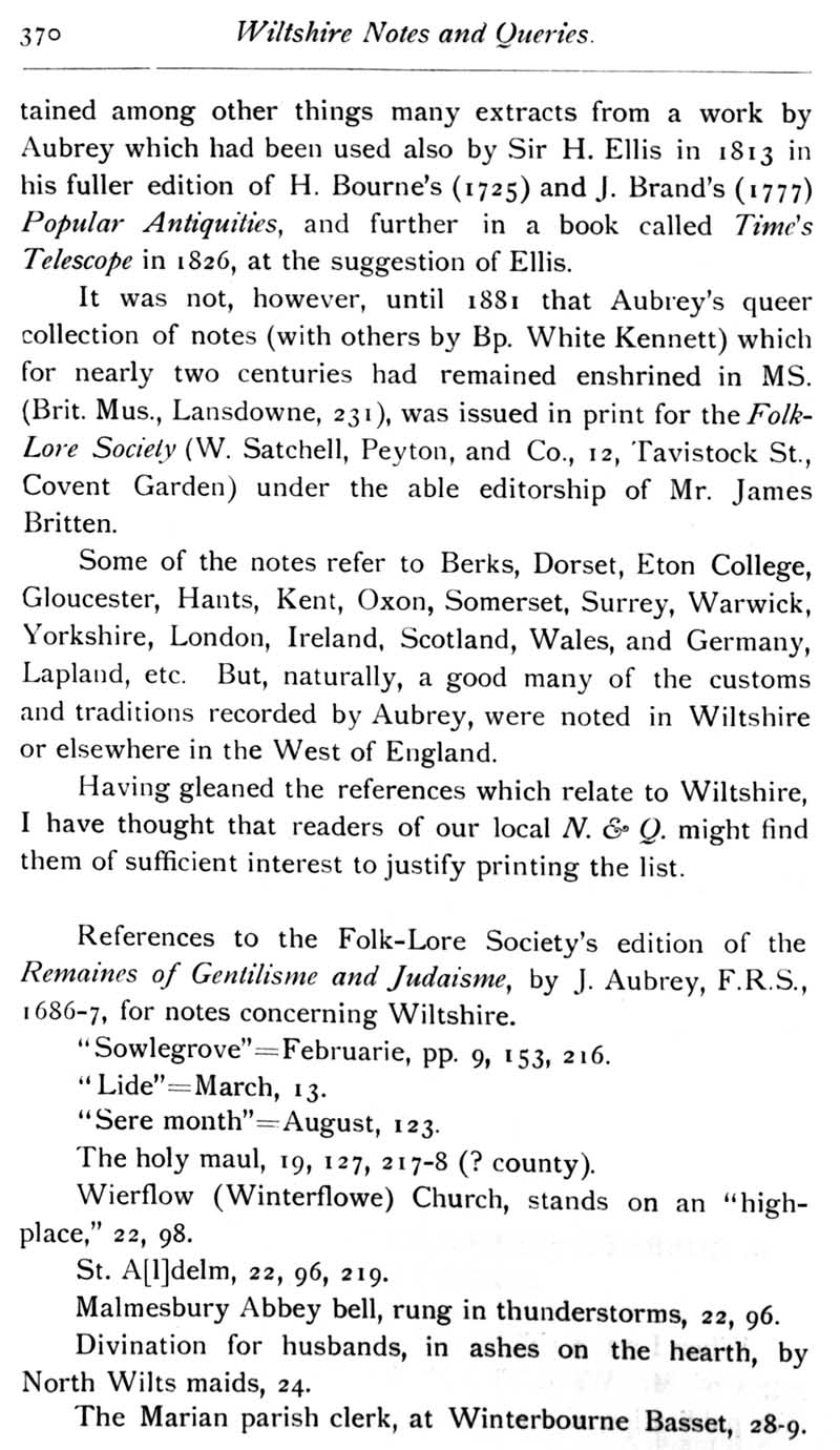 Page 35 J. Aubrey's 'Remaines of Gentilisme and Judaisme', 1687