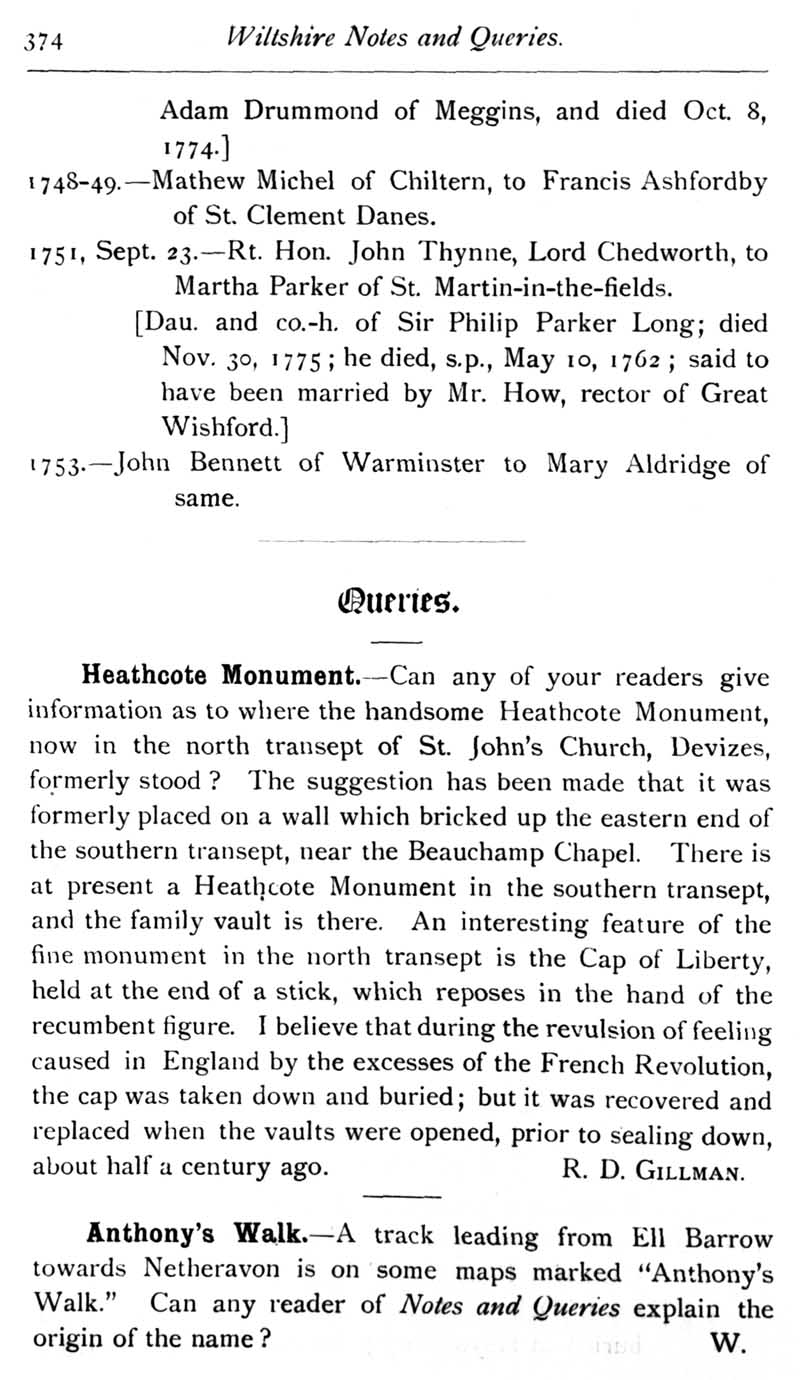 Page 39 Regsiters of Somerset House Chapel, 1714-1775;Queries: Heathcote Monument; Anthony's Walk