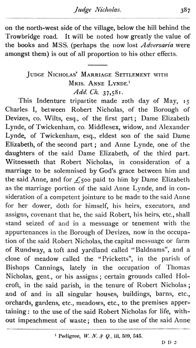 Chapter 10 Judge Nicholas; Stokes; Records of Wiltshire Parishes; Quakerism in Wiltshire; Burials near the Gallow's Ditch; Wiltshire Wills; Eyre of Wilts; Grant of Arms to John Skutt, 1546; John of Salisbury; Queries; Replies; Notes on Books.