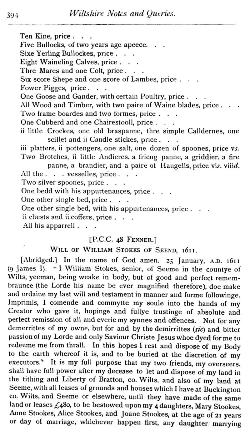 Chapter 10 Judge Nicholas; Stokes; Records of Wiltshire Parishes; Quakerism in Wiltshire; Burials near the Gallow's Ditch; Wiltshire Wills; Eyre of Wilts; Grant of Arms to John Skutt, 1546; John of Salisbury; Queries; Replies; Notes on Books.
