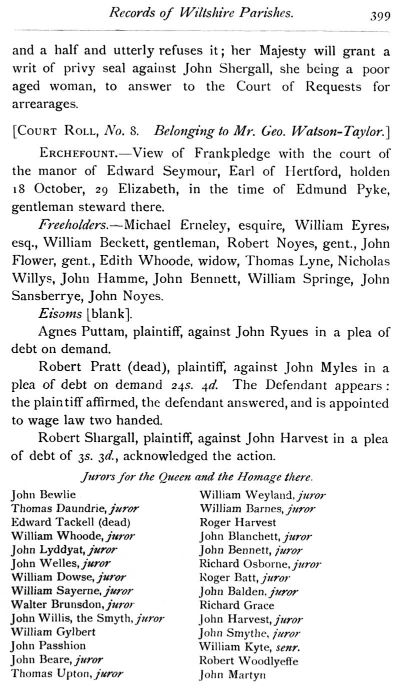 Chapter 10 Judge Nicholas; Stokes; Records of Wiltshire Parishes; Quakerism in Wiltshire; Burials near the Gallow's Ditch; Wiltshire Wills; Eyre of Wilts; Grant of Arms to John Skutt, 1546; John of Salisbury; Queries; Replies; Notes on Books.