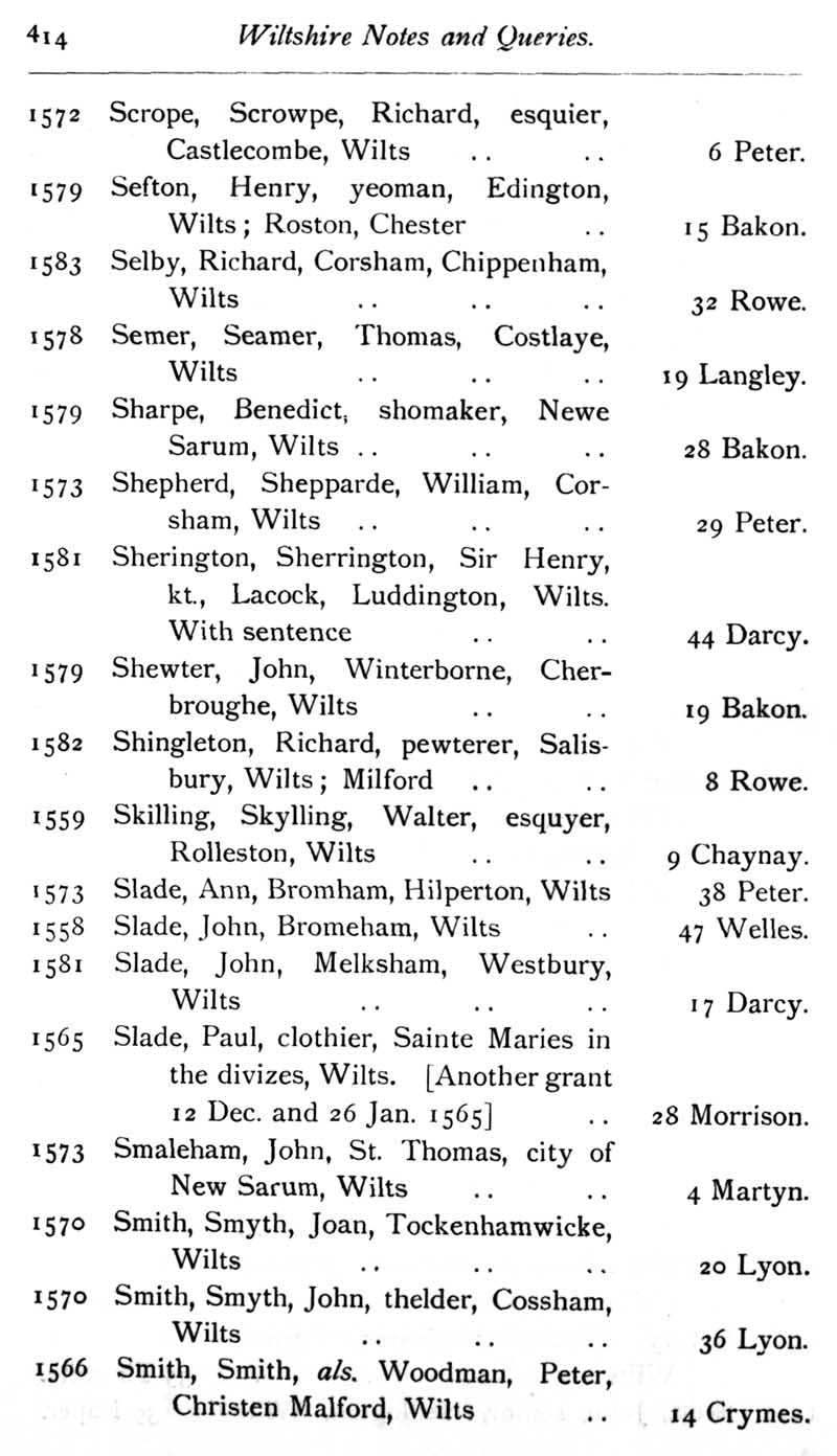 Chapter 10 Judge Nicholas; Stokes; Records of Wiltshire Parishes; Quakerism in Wiltshire; Burials near the Gallow's Ditch; Wiltshire Wills; Eyre of Wilts; Grant of Arms to John Skutt, 1546; John of Salisbury; Queries; Replies; Notes on Books.