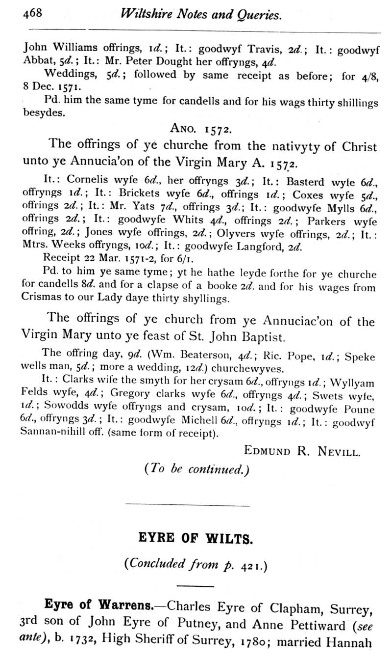 Chapter 11 Wilton House and its Literary Associations; Records of Wiltshire Parishes; Quakerism in Wiltshire; Wiltshire Wills; Stokes; The Chrysom Book of St Thomas, New Sarum; Eyre of Wilts; Dugdale of Seend; Tom King's Coffee-House; Queries; Replies; Notes on Book
