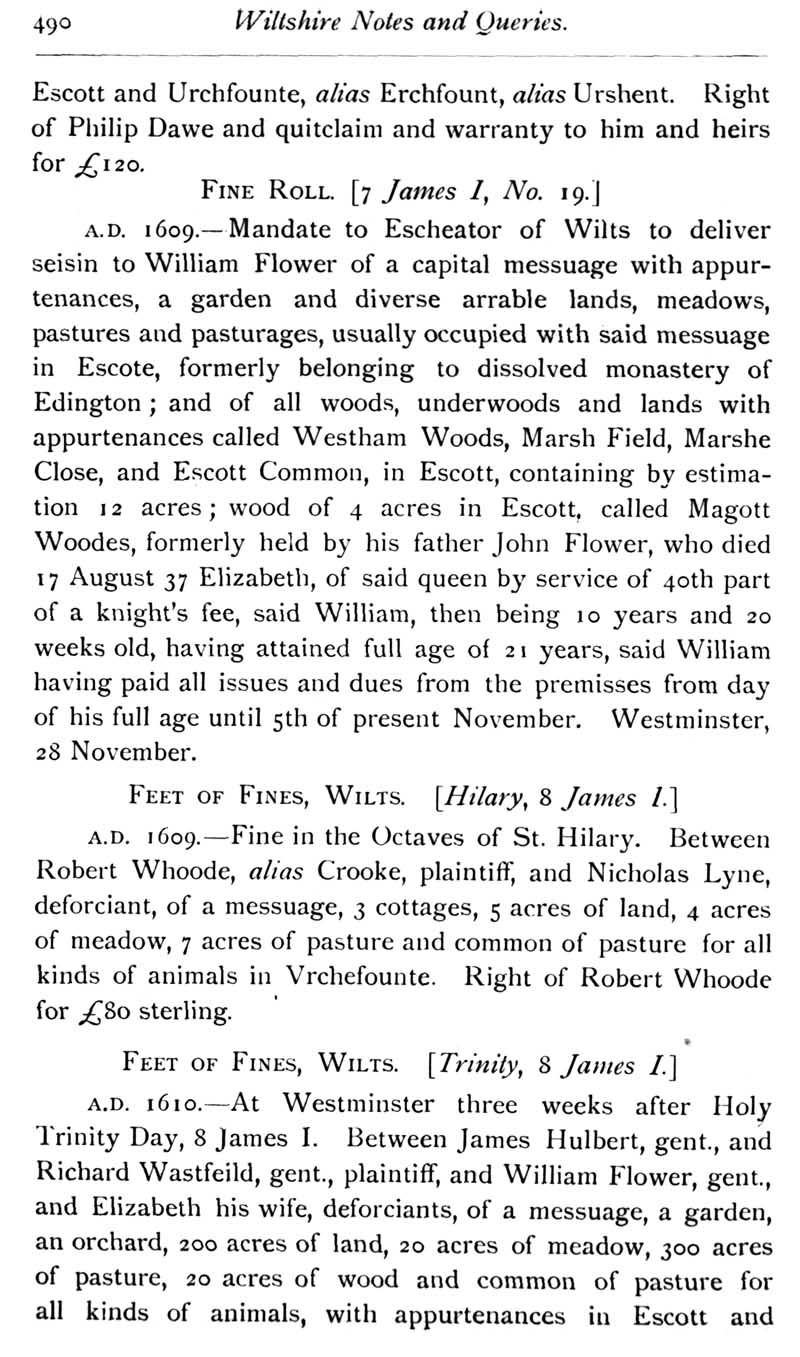 Chapter 12 Two Wiltshire Monuments; Records of Wiltshire Parishes: Urchfont with Stert; Wiltson House and its Literary Associations; Stokes; The Chrysom Book of St. Thomas, New Sarum; Quakerism in Wiltshire; Wroughton, Sadler Monumental Inscriptions; Wiltshire Wills