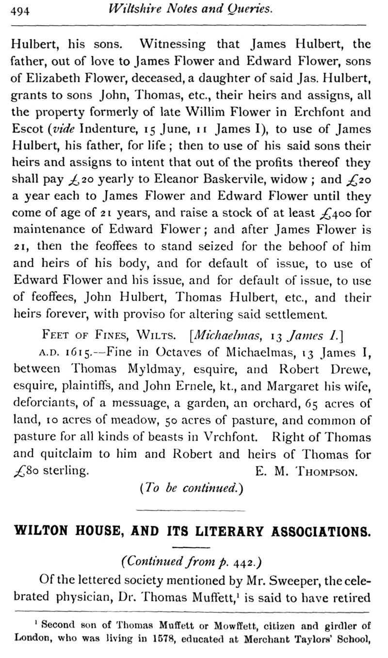 Chapter 12 Two Wiltshire Monuments; Records of Wiltshire Parishes: Urchfont with Stert; Wiltson House and its Literary Associations; Stokes; The Chrysom Book of St. Thomas, New Sarum; Quakerism in Wiltshire; Wroughton, Sadler Monumental Inscriptions; Wiltshire Wills