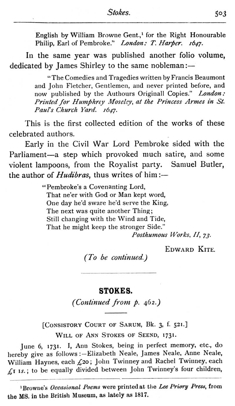 Chapter 12 Two Wiltshire Monuments; Records of Wiltshire Parishes: Urchfont with Stert; Wiltson House and its Literary Associations; Stokes; The Chrysom Book of St. Thomas, New Sarum; Quakerism in Wiltshire; Wroughton, Sadler Monumental Inscriptions; Wiltshire Wills