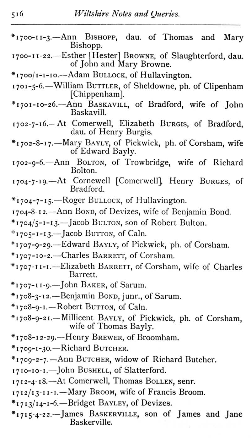 Chapter 12 Two Wiltshire Monuments; Records of Wiltshire Parishes: Urchfont with Stert; Wiltson House and its Literary Associations; Stokes; The Chrysom Book of St. Thomas, New Sarum; Quakerism in Wiltshire; Wroughton, Sadler Monumental Inscriptions; Wiltshire Wills