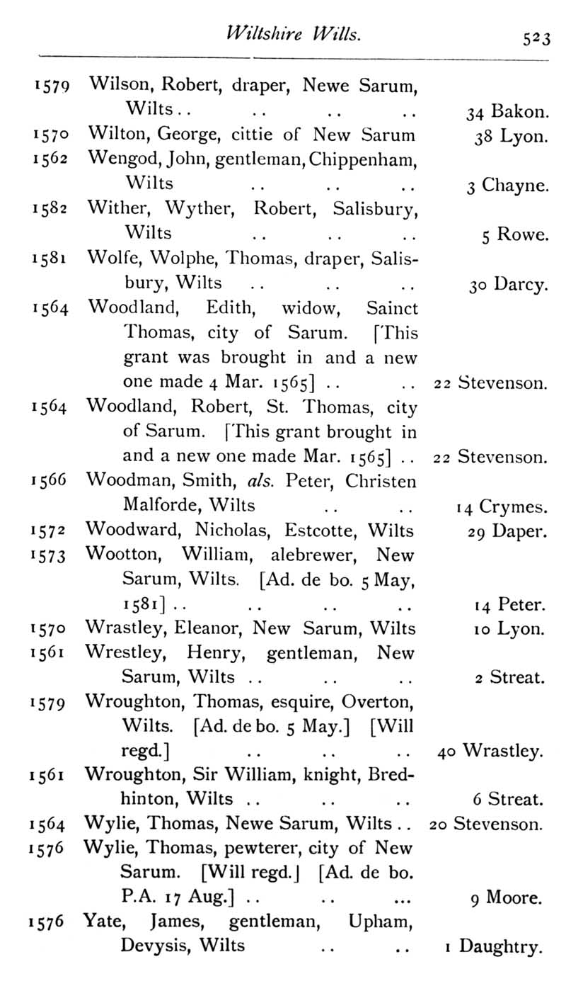 Chapter 12 Two Wiltshire Monuments; Records of Wiltshire Parishes: Urchfont with Stert; Wiltson House and its Literary Associations; Stokes; The Chrysom Book of St. Thomas, New Sarum; Quakerism in Wiltshire; Wroughton, Sadler Monumental Inscriptions; Wiltshire Wills
