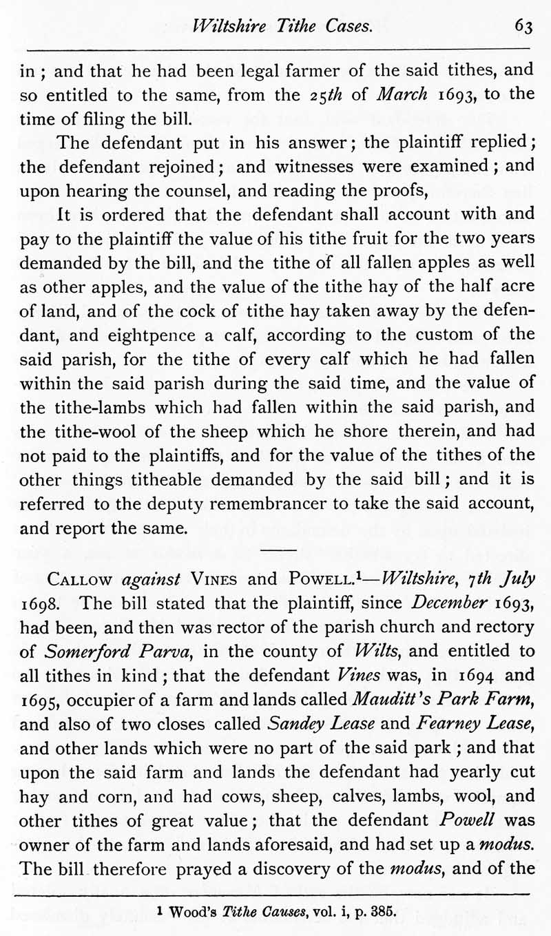 Page 16 Wiltshire title cases, Harding V Golding and Callow V Vines and Powell.