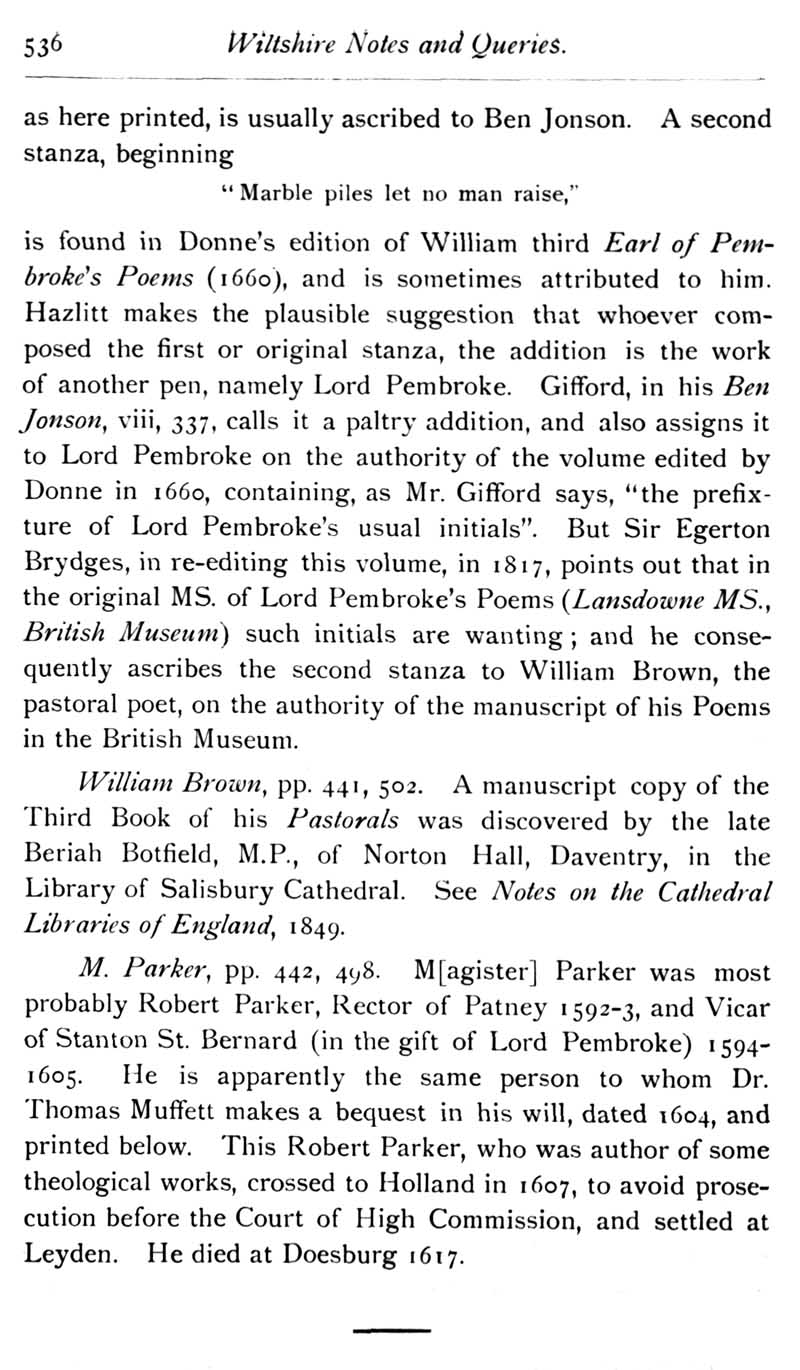 Chapter 13 Wilton House and its Literary Associations; Records of Wiltshire Parishes: Urchfont with Stert; Quakerism in Wiltshire; Stokes; The Chrysom Book of St Thomas, New Sarum; Feet of Fines for Wiltshire; Wroughton Registers, Sadler; Queries.