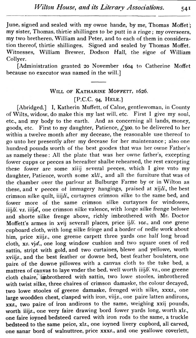 Chapter 13 Wilton House and its Literary Associations; Records of Wiltshire Parishes: Urchfont with Stert; Quakerism in Wiltshire; Stokes; The Chrysom Book of St Thomas, New Sarum; Feet of Fines for Wiltshire; Wroughton Registers, Sadler; Queries.