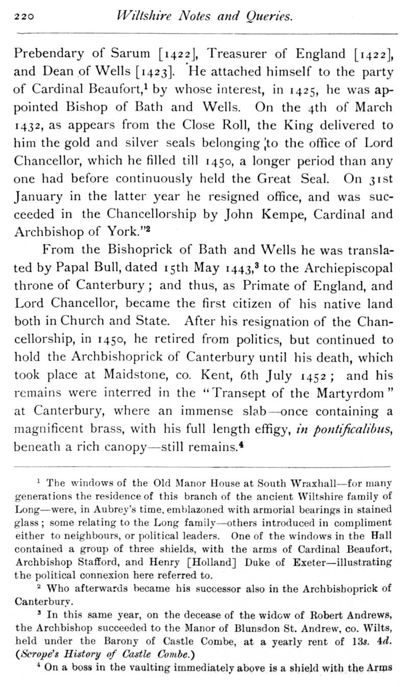 Page 15 Wiltshire ancestry of John Stafford, Archbishop of Canterbury, 1443-52.