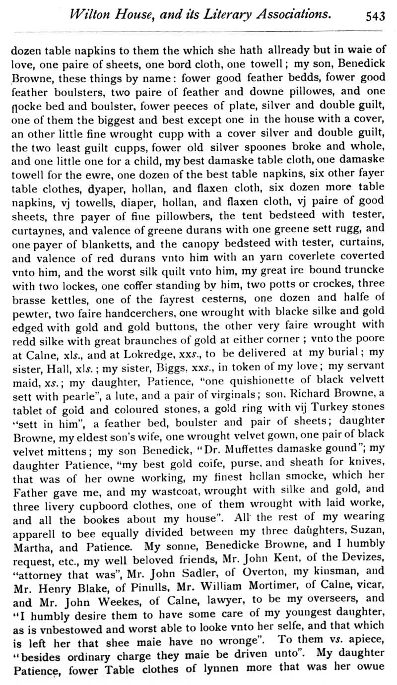 Chapter 13 Wilton House and its Literary Associations; Records of Wiltshire Parishes: Urchfont with Stert; Quakerism in Wiltshire; Stokes; The Chrysom Book of St Thomas, New Sarum; Feet of Fines for Wiltshire; Wroughton Registers, Sadler; Queries.