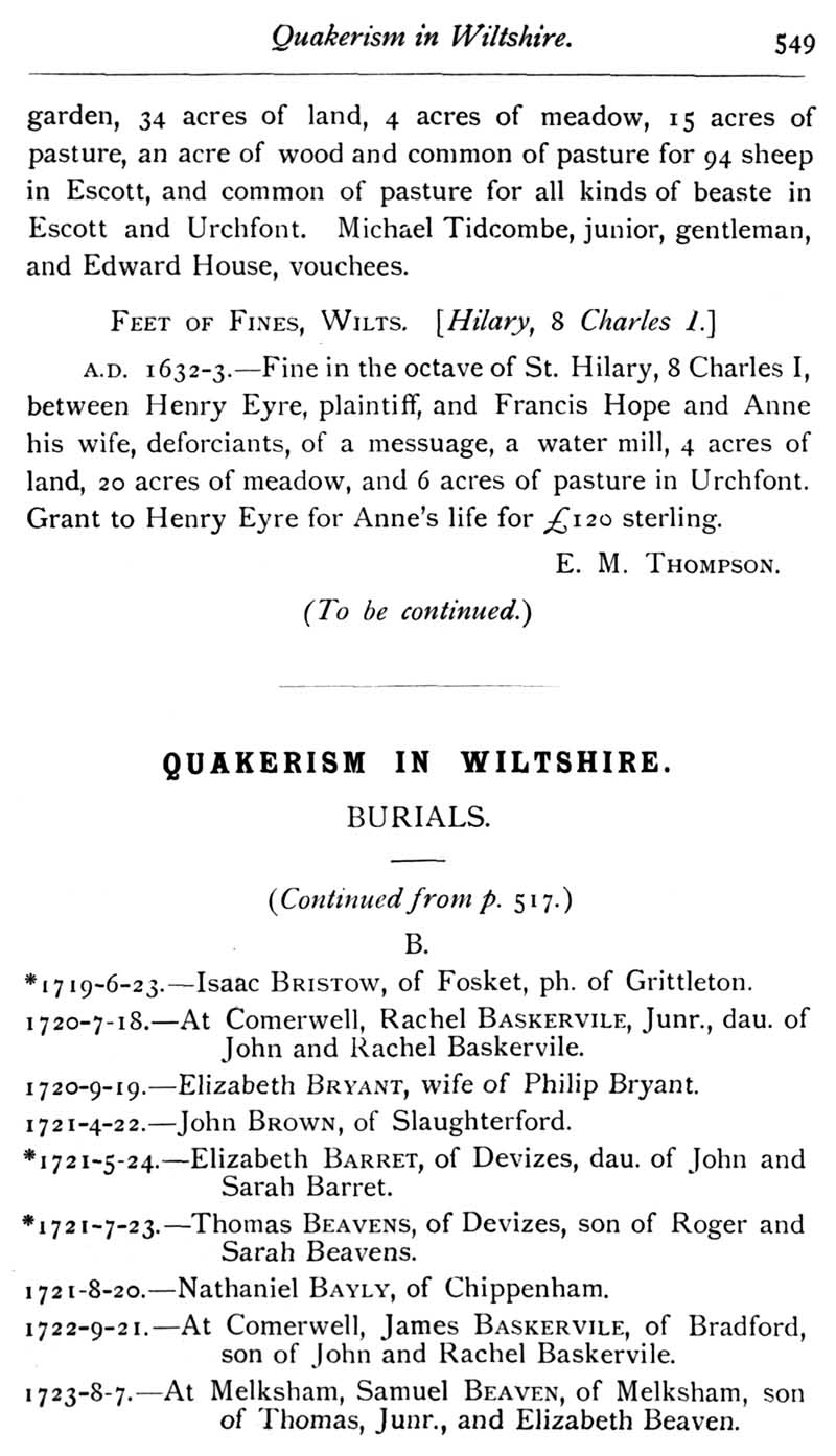 Page 21 Records of Wiltshire Parishes: Urchfont with Stert;Quakerism in Wiltshire
