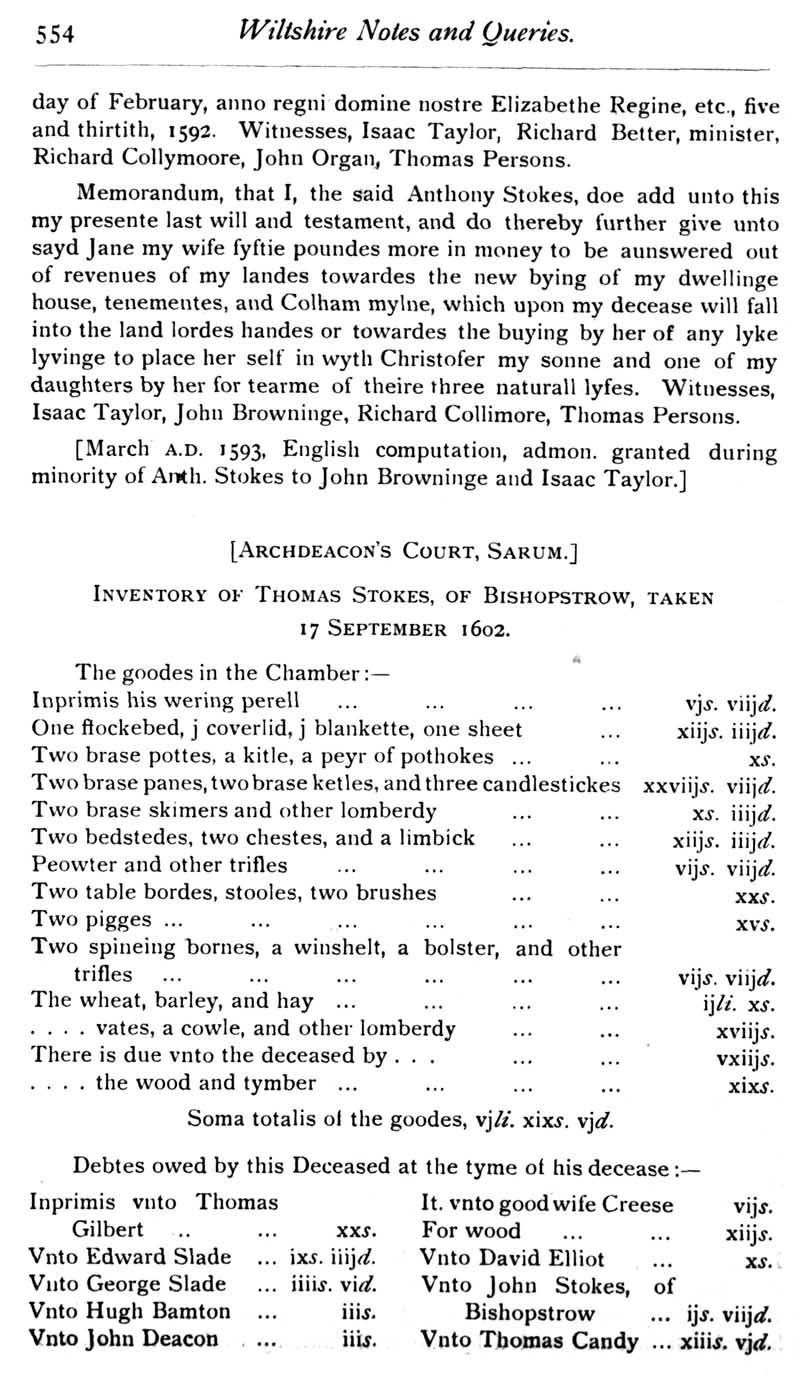 Chapter 13 Wilton House and its Literary Associations; Records of Wiltshire Parishes: Urchfont with Stert; Quakerism in Wiltshire; Stokes; The Chrysom Book of St Thomas, New Sarum; Feet of Fines for Wiltshire; Wroughton Registers, Sadler; Queries.