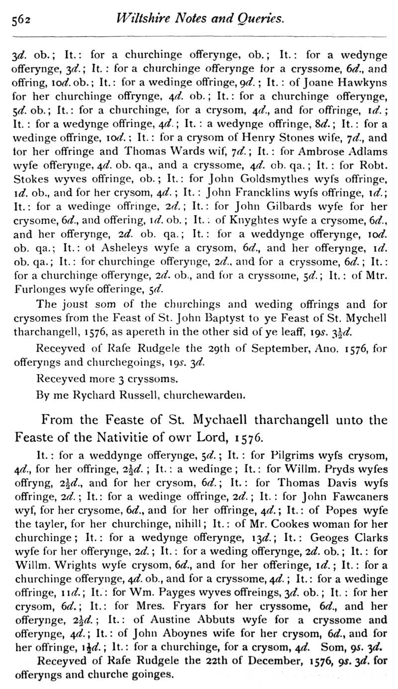 Chapter 13 Wilton House and its Literary Associations; Records of Wiltshire Parishes: Urchfont with Stert; Quakerism in Wiltshire; Stokes; The Chrysom Book of St Thomas, New Sarum; Feet of Fines for Wiltshire; Wroughton Registers, Sadler; Queries.