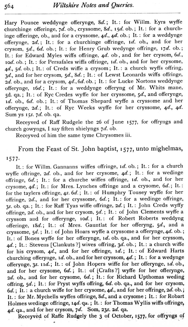 Chapter 13 Wilton House and its Literary Associations; Records of Wiltshire Parishes: Urchfont with Stert; Quakerism in Wiltshire; Stokes; The Chrysom Book of St Thomas, New Sarum; Feet of Fines for Wiltshire; Wroughton Registers, Sadler; Queries.