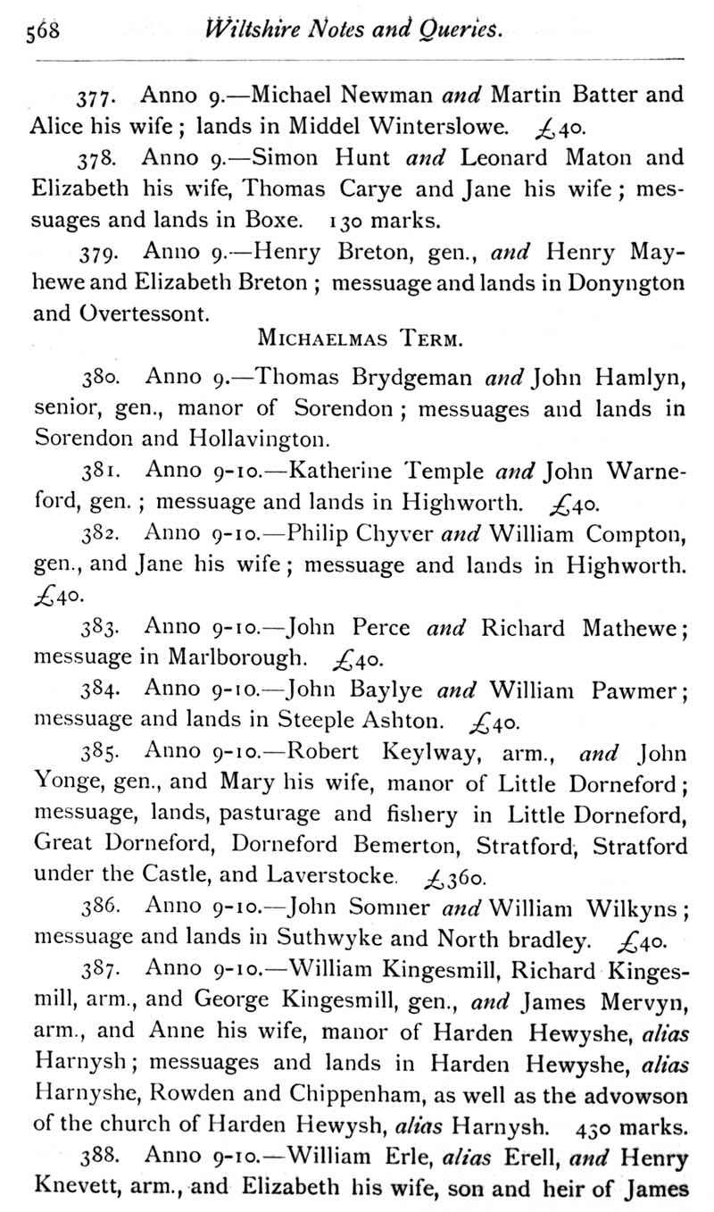 Page 40 A Calendar of Feet of Fines for Wiltshire