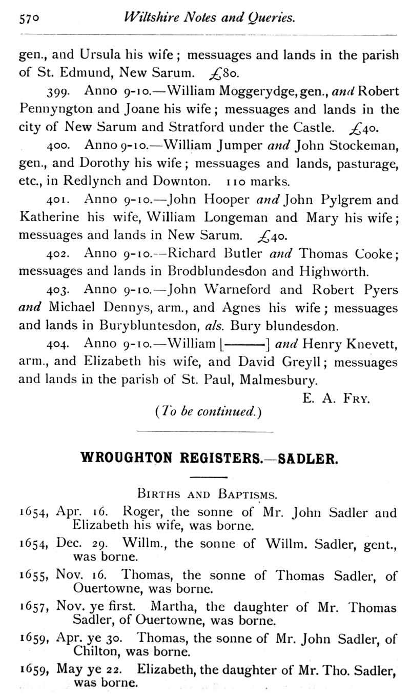 Page 42 A Calendar of Feet of Fines for Wiltshire;Wroughton Registers-Sadler