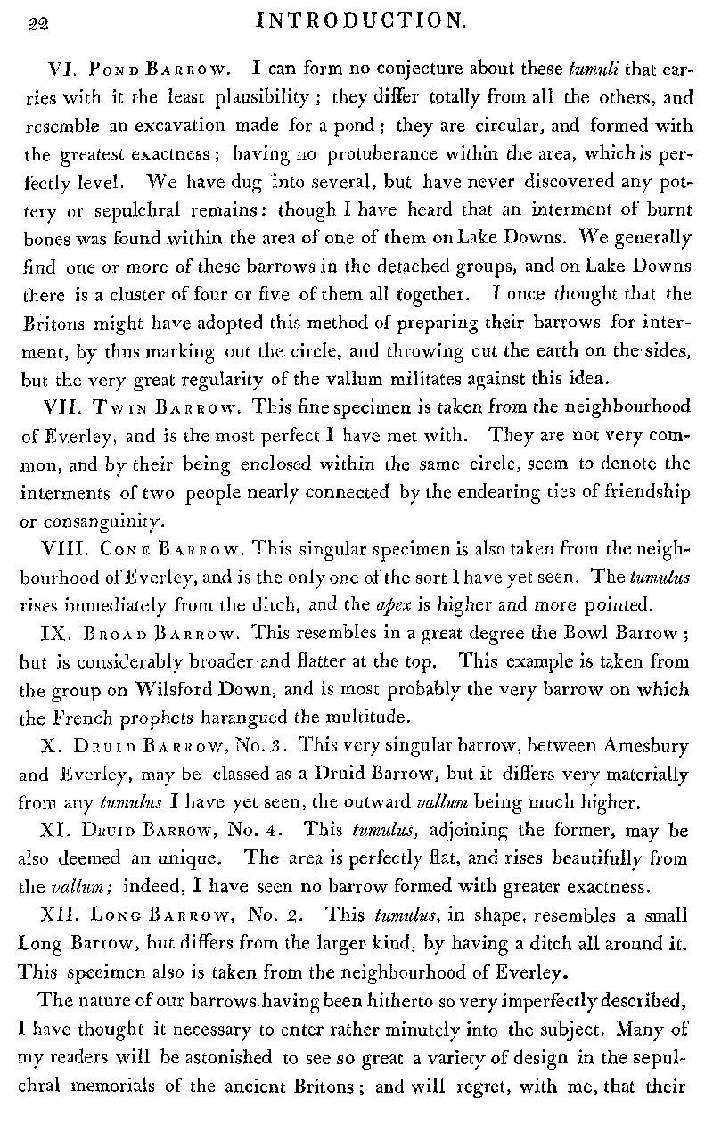 Chapter 2 Frontispiece; Dedication; Preface; Map of Antiquities in Wilts; Introduction by the author; engravings of barrow types.