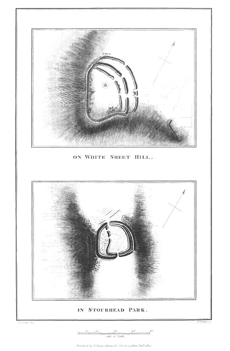 Page 13 Station 1: Stourton,Engraving of earthworks on White Sheet Hill and in Stourhead Park.