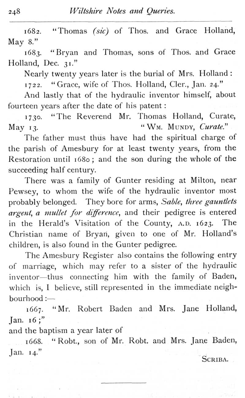 Page 43 Chisledon, monumental brass to Francis Rutland, died 1592. Rev. Thomas Holland of Amesbury.