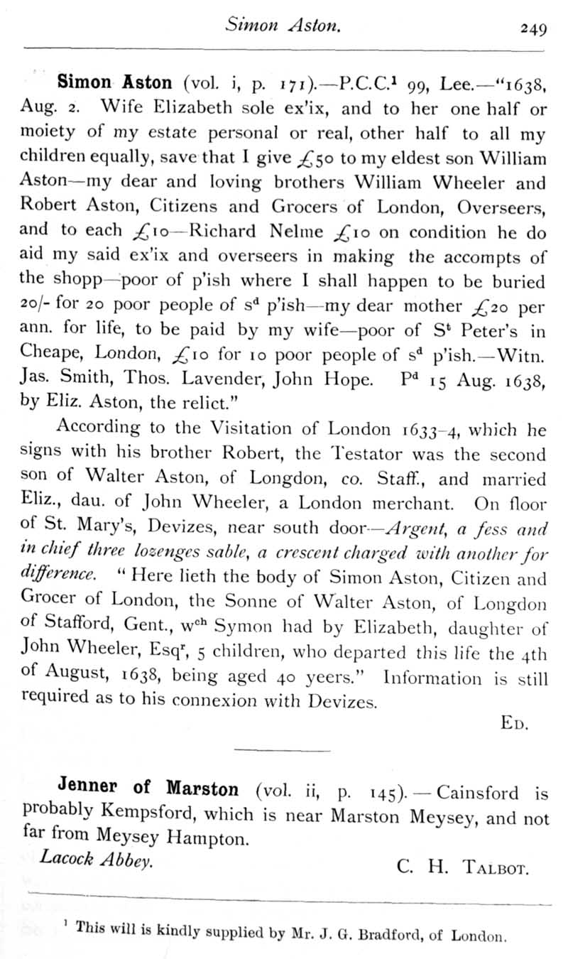 Page 44 Rev. Thomas Holland of Amesbury. Will of Simon Aston.