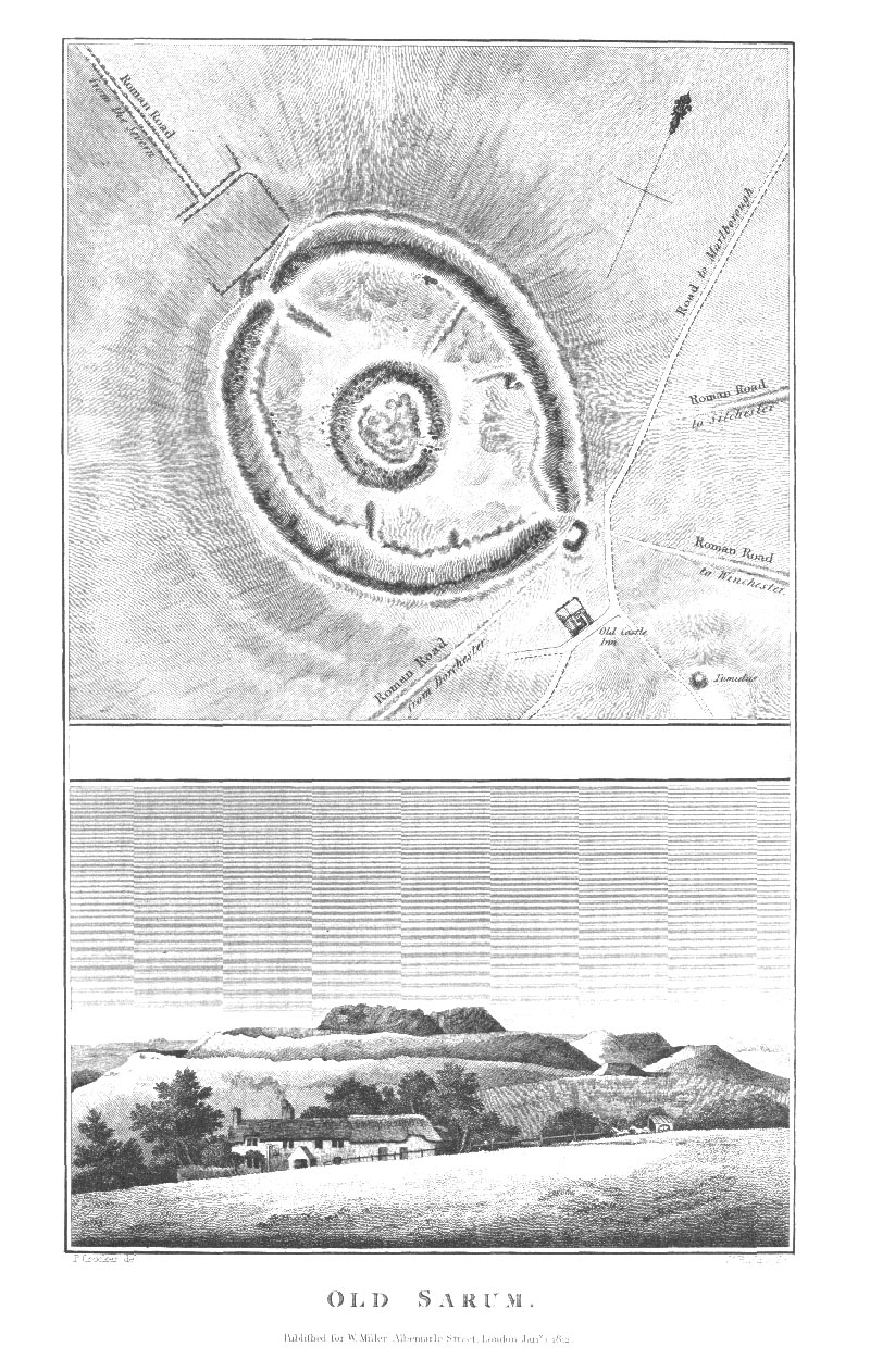 Page 6 Salisbury District,Plan of Old Sarum; illustration of landscape at Old Sarum