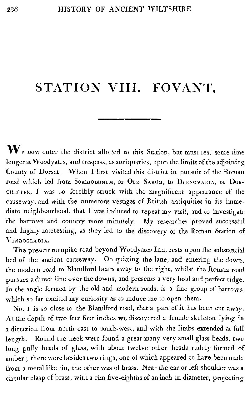 Page 1 Fovant,Roman road from Old Sarum to Dorchester; Roman station of Vindogladia; barrows along road from Sarum to Dorchester.
